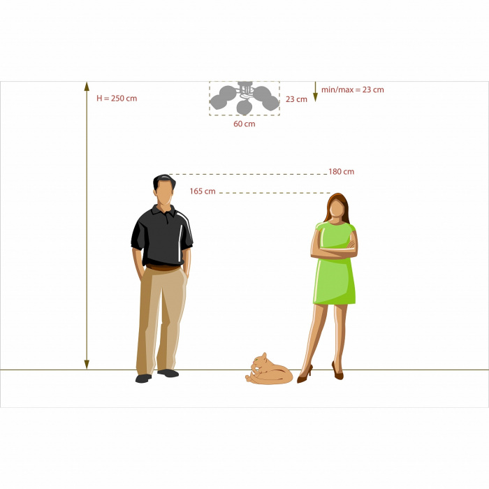 Высота люстры = Высота комнаты, см / 4. |